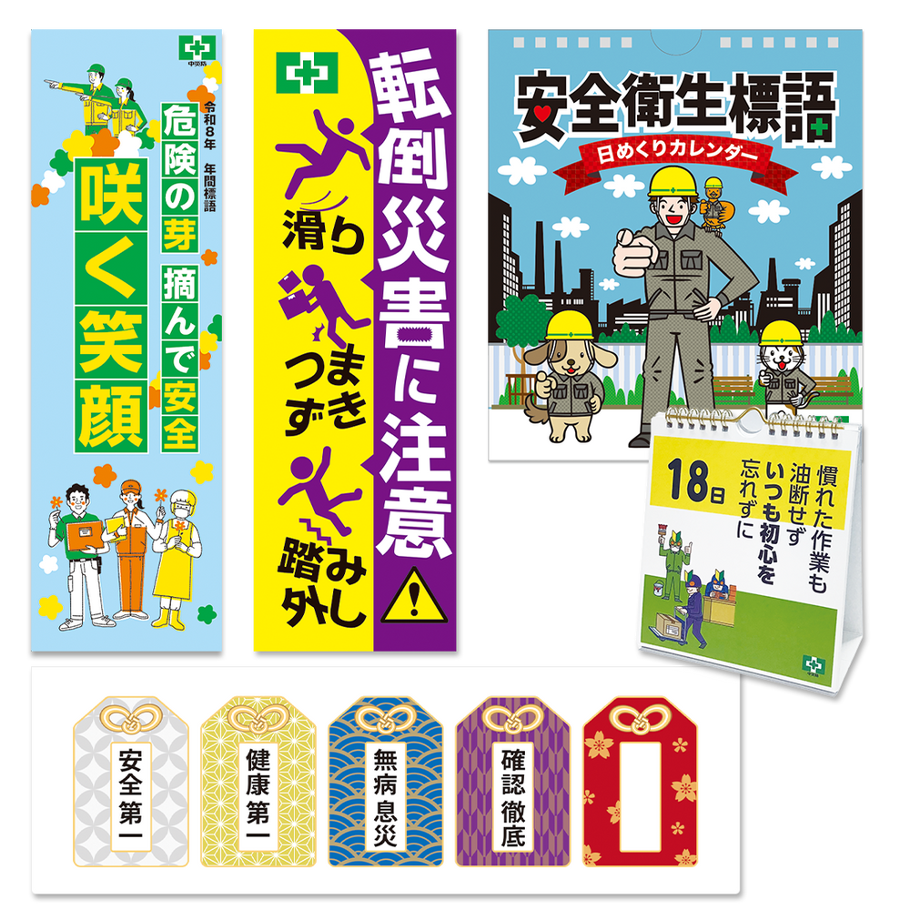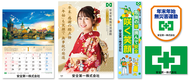 ポスター・用品に社名などを入れることができます。社員一丸となった安全衛生活動にお役立てください!